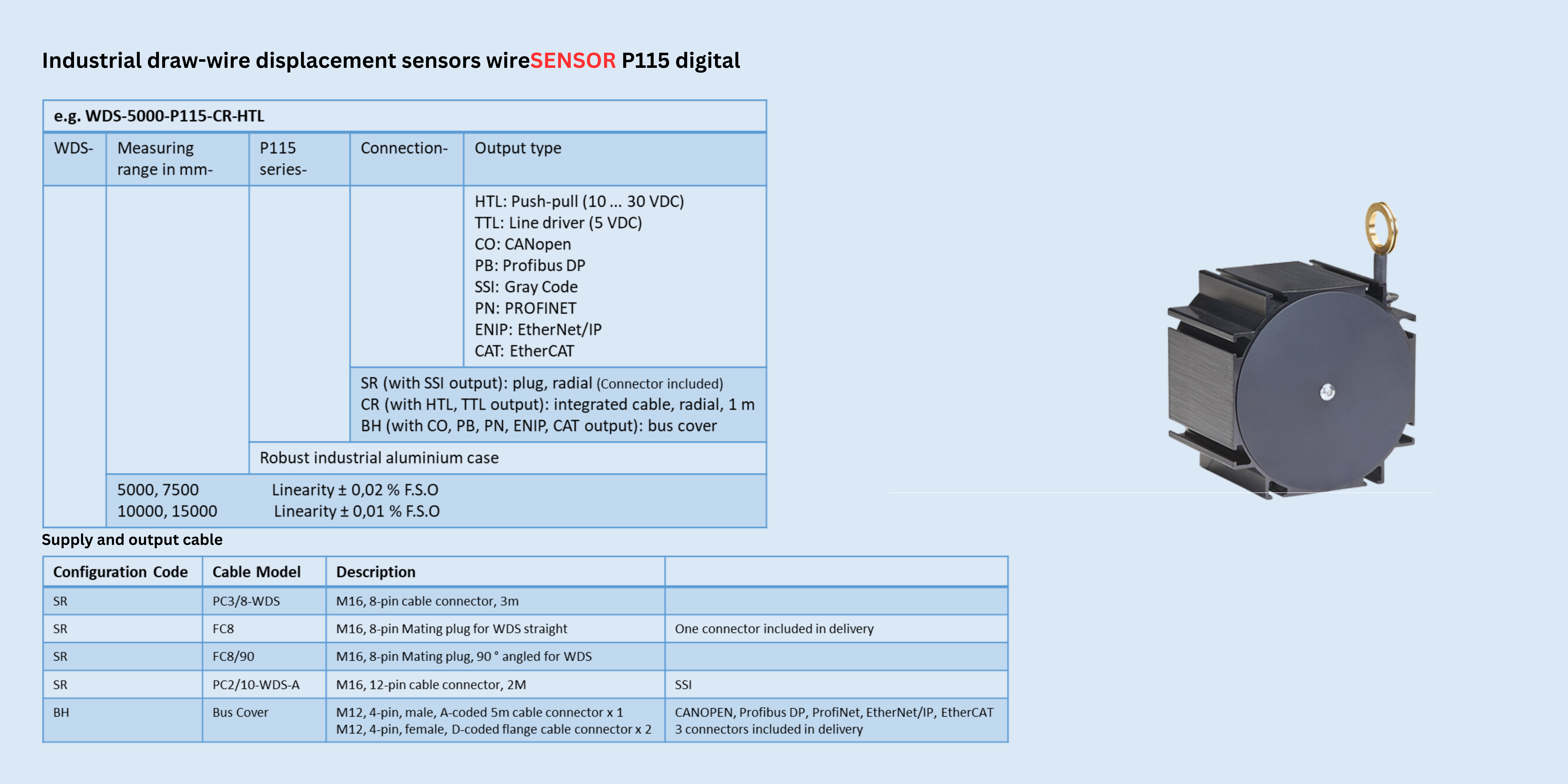 Industrial draw-wire sensors – wireSENSOR WDS-P115 digital |