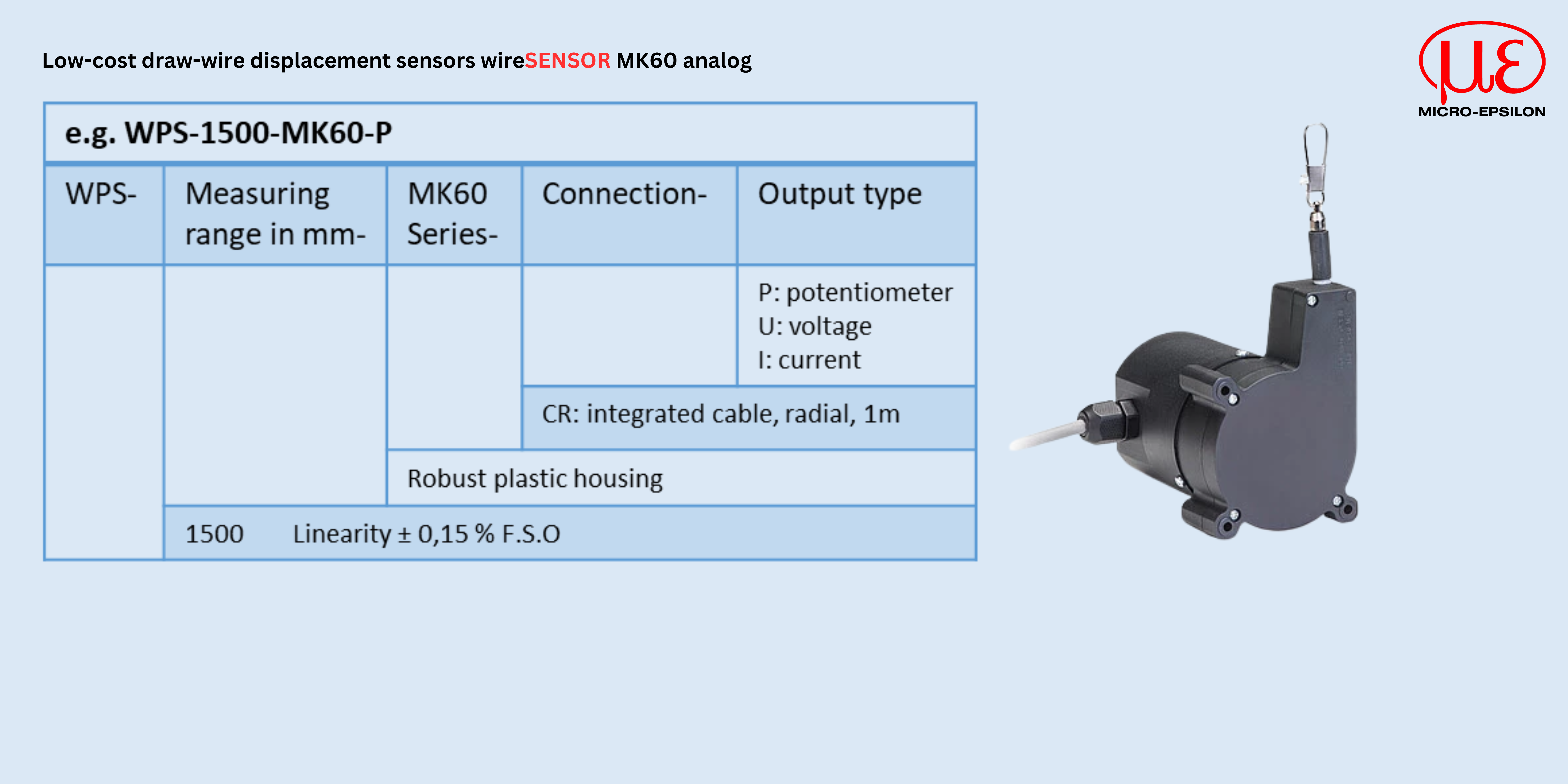 The miniature draw-wire sensors of the MK series are specially designed for use in high-volume production. Due to the favorable price and the compact size of the sensor, new potential designs and cost optimization are the benefits to the user.