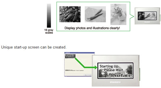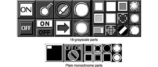 Stylish partsRecognizable and easy-to-operate screens can be created using clear 16-grayscale parts.