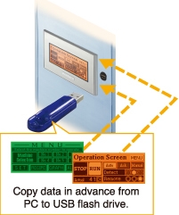 Easy transfer of screen data without a PC (USB Type A)Easy screen editing using a USB flash drive without bringing a PC to the site.