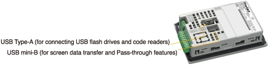 Easy editing of Third-party PLC ladder programs (USB Type mini B)The Pass-through feature allows you to easily edit PLC ladder programs and change the configuration via a HMI, without switching cables on site.