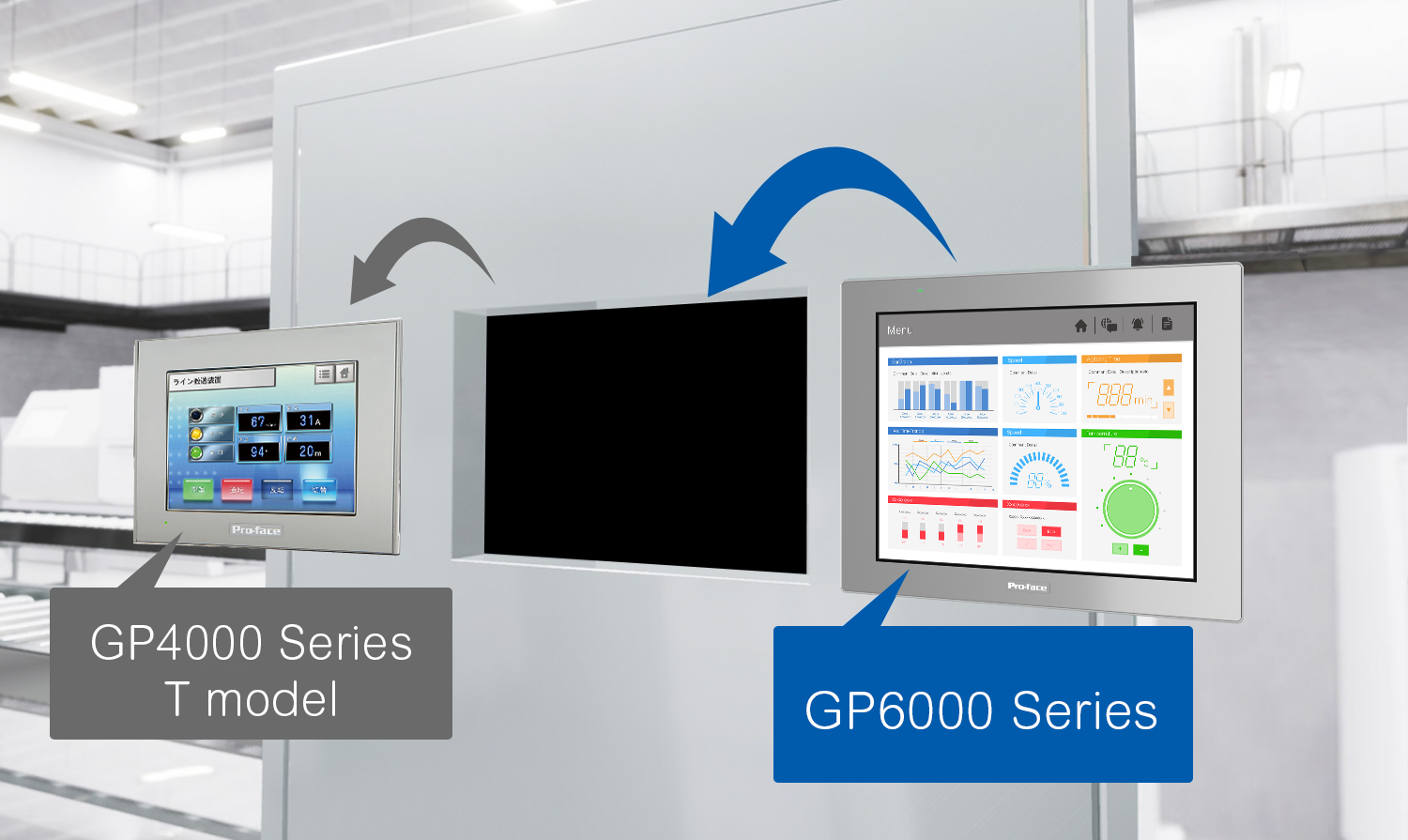 It's an easy upgrade with the same panel cut-out, display size, and interface configuration. GP-Pro EX realizes smart migration for your machine.
