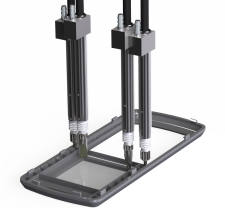 With an ultra-low tip force of 0.03N, Solartron Ultra Feather Touch probes are used instead of non-contact technologies for certain applications. Compared to a laser triangulation sensor, the UFT probes are more cost efficient, more compact, much easier to set up, and more accurate. Here, three Ultra Feather Touch probes are being used to check three points on a small, delicate Hard Disk Drive surface.