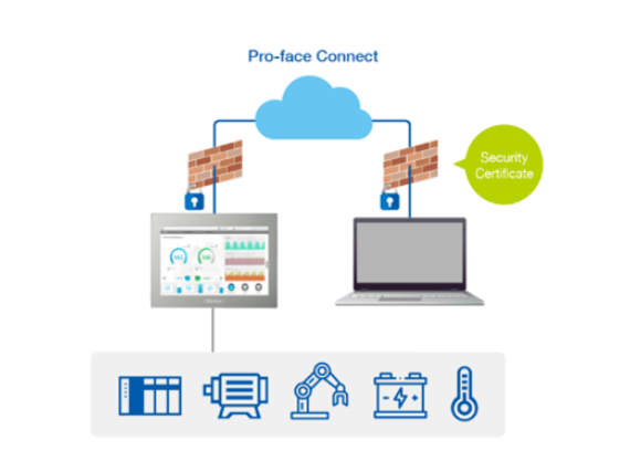 Pro-face Connect Offers an encrypted communication and can centrally manage users with different access levels. Pro-face connect product undergoes third-party audit assessments to demonstrate compliance under IEC62443 standards
