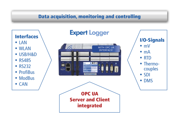 OPC UA is becoming an increasingly established protocol and when used with the Expert Logger devices, measurement acquisition, monitoring and test stand automation applications can be made ready for open data exchange data in accordance with Industry 4.0/Internt of Things.