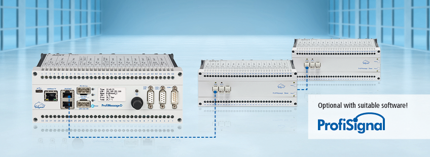 ProfiMessage D devices record measurement data independently to an internal data storage capability of up to 32 GB, large enough for several billion measurement values including precision time stamps. A USB interface is available to extend the data storage capability via a USB stick.